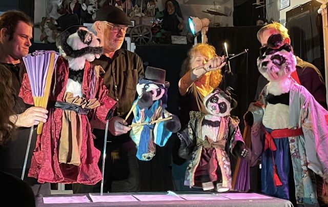 This is a show of young love, cougar love ,,,,,, growl,,,,,, government corruption, corporal punishment, and a tad bit of blood-thirsty-ness thrown in for good measure. Transforming sets, contemporary adult jokes, beautiful music and yes professional singing all blend together seamlessly to take you on a magical journey of adult puppetry into the gutters of Ancient Japan with our zany panda friends. So, if great music and comedy is your thing , come out and have a drink on us and check out this amazing hilarious show.